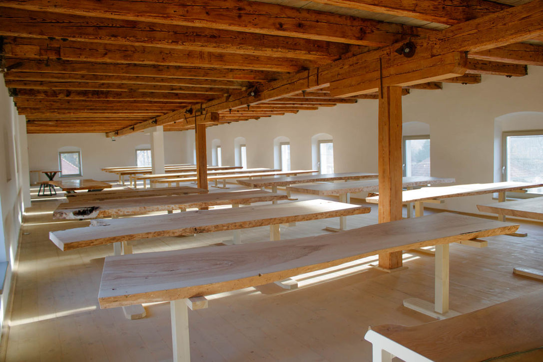 A bemutatótermek egy régi malom épületben találhatóak, Héderváron. A termeket azzal a gondossággal újítottuk fel, mint ahogy asztalainkat készítjük. Igazán megfelelő atmoszférájúak az asztallapok és kész asztalok közötti barangoláshoz. A termekben 700 m2-en állítunk ki félkész és kész alkotásokat.